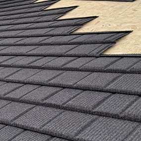 The stone-coated surface replicates the beauty of traditional shingles while offering a wide range of colors and textures to complement various architectural styles and exterior finishes.